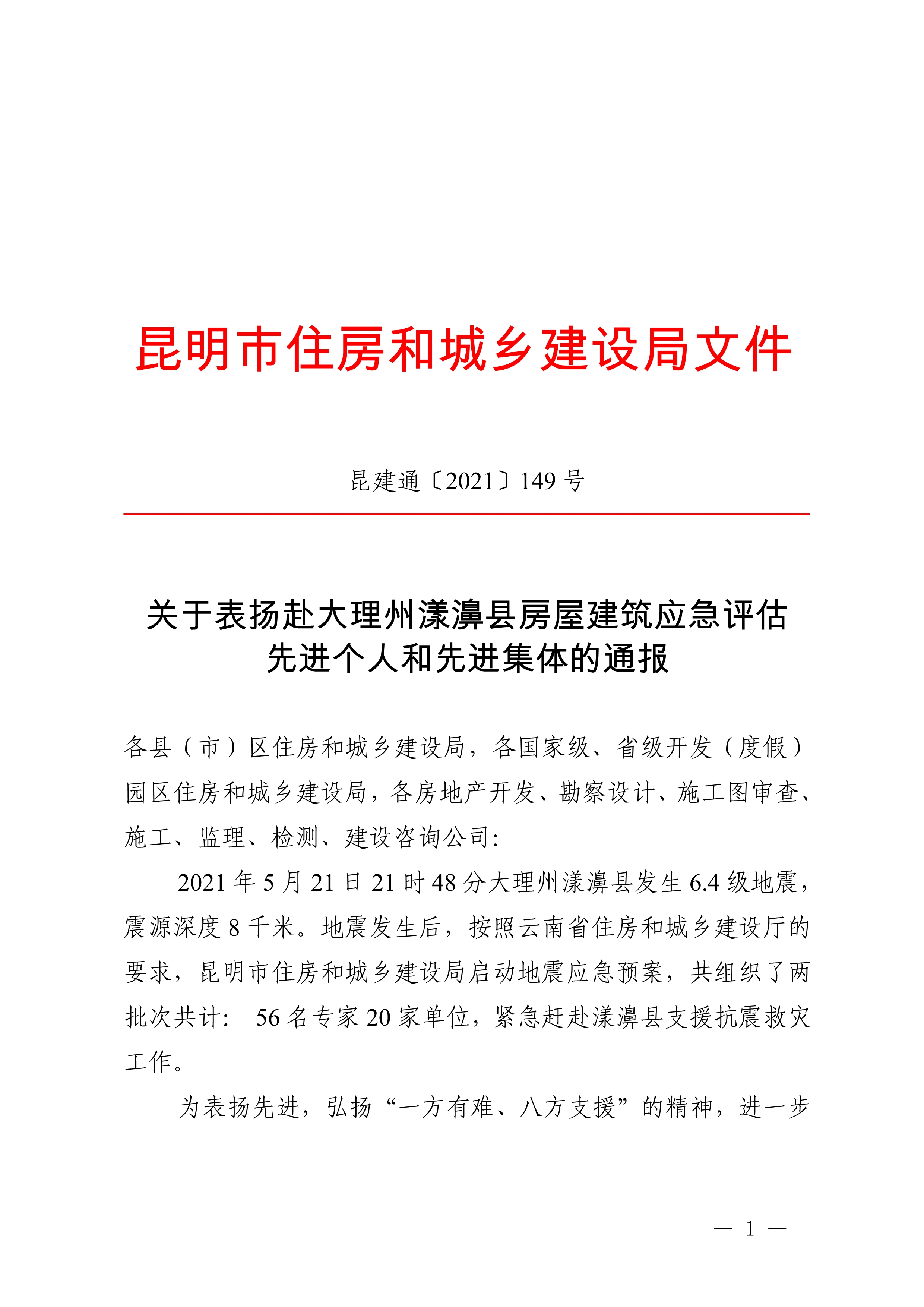 附件:《關(guān)于表?yè)P(yáng)赴大理州漾濞縣房屋建筑應(yīng)急評(píng)估先進(jìn)個(gè)人和先進(jìn)集體的通報(bào)》(昆建通〔2021〕149號(hào))